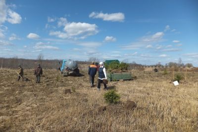 Они посадили 200 молодых сосен и елей в честь 70-летия Победы в Великой Отечественной войне.