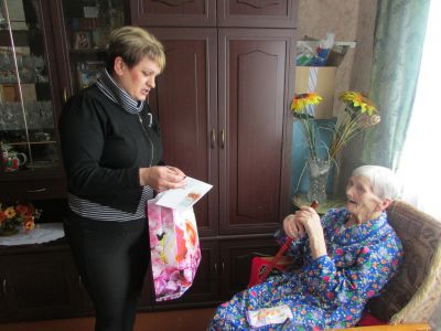 Руководитель сектора социальной защиты населения в Духовщинском районе в Ярцевском районе Е.П. Касьянова, начальник отдела по информационной политике Администрации муниципального образования «Духовщинский район» Н.В. Котова тепло поздравили Анну Кузьминичну и вручили ей персональные поздравления от Президента Российской Федерации В.В. Путина и Губернатора Смоленской области Алексея Островского, передали поздравления с юбилеем от Главы муниципального образования «Духовщинский район» Смоленской области Бориса Петифорова.