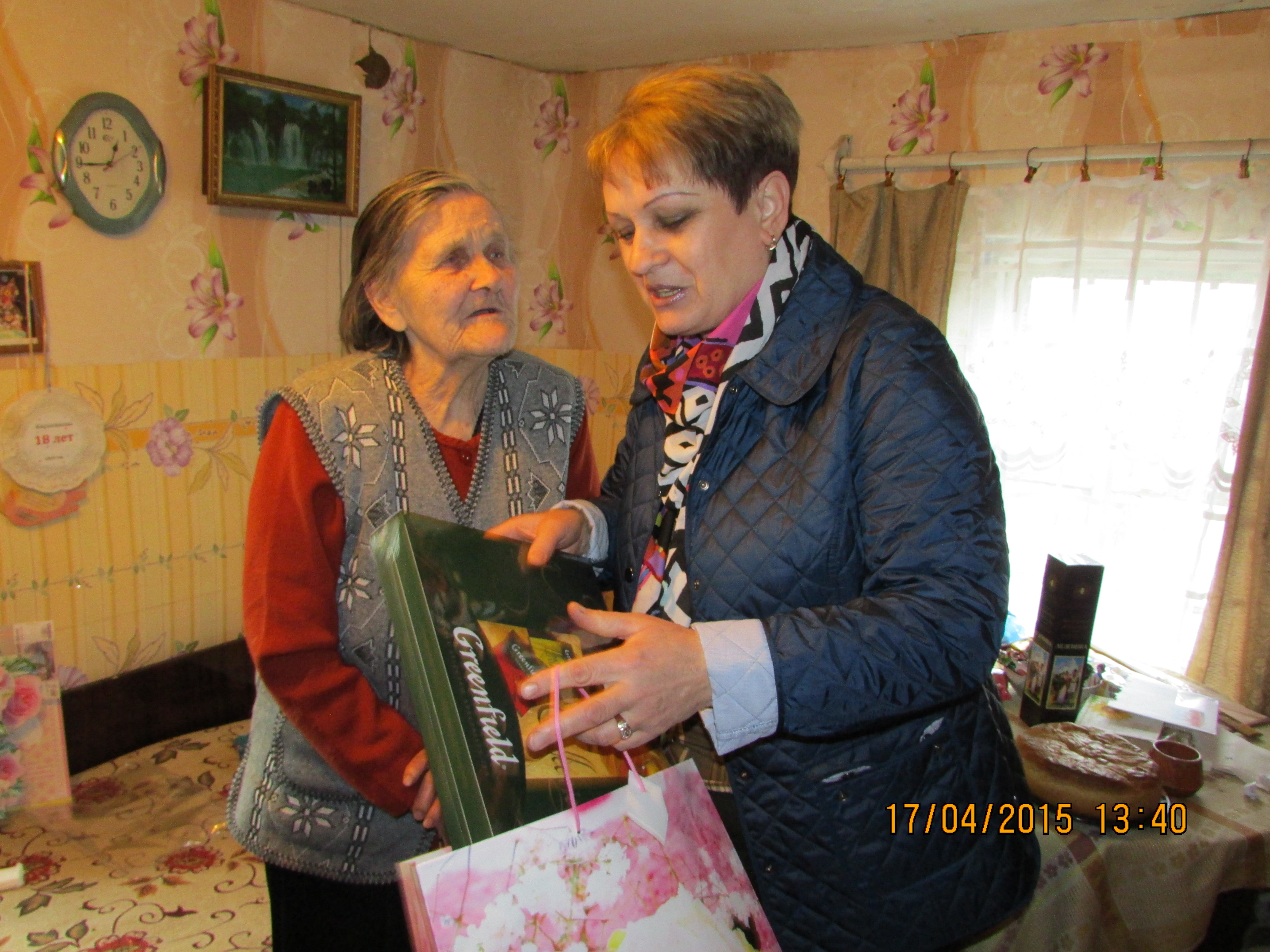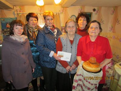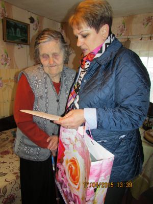Поздравить юбиляршу, вручить памятный подарок приехали в этот день руководитель сектора социальной защиты населения в Духовщинском районе в Ярцевском районе Е.П. Касьянова, директор СОГБУ «Духовщинский комплексный центр социального обслуживания населения» Л.А. Короткова.