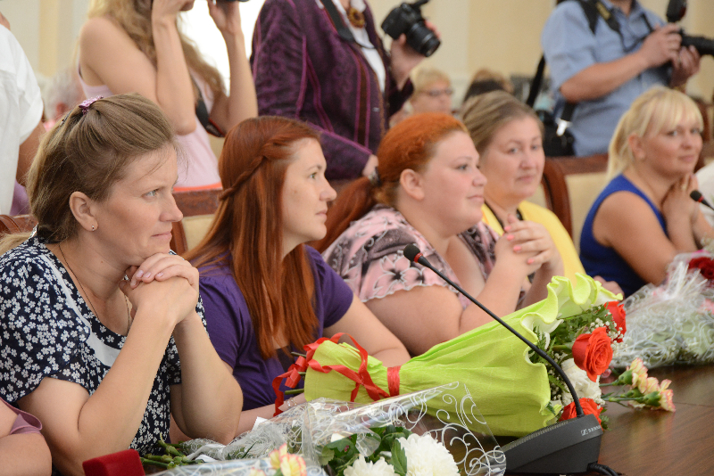 Поприветствовав многодетных мам, Алексей Островский вручил им почетные знаки «Материнская слава». Обладательницами награды от нашего района стали Прокофьева Надежда Ивановна и Терехова Светлана Алексеевна. Обе женщины воспитывают четверых детей.
