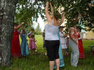 На праздник пришли и взрослые, и дети. Завивали березку, пели обрядовые песни. Проводился конкурс среди частушечниц. Победителями стали Иванова Вера Ивановна и Романова Наталья Степановна. Дети принимали самое активное участие в обряде, а также в различных конкурсах . Завершился праздник общей трапезой, на которой главным блюдом стала уха.