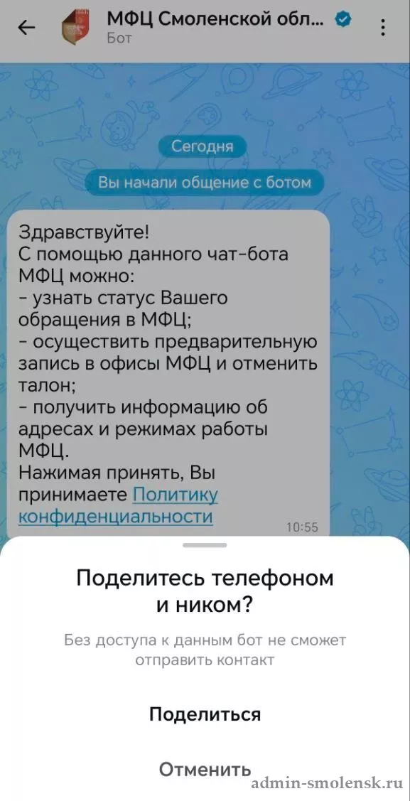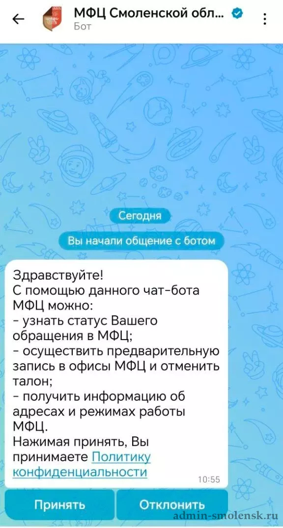 Для удобства заявителей в МФЦ Смоленской области функционируют различные цифровые сервисы. Среди них — чат-бот МФЦ Смоленской области в национальном мессенджере МАХ.