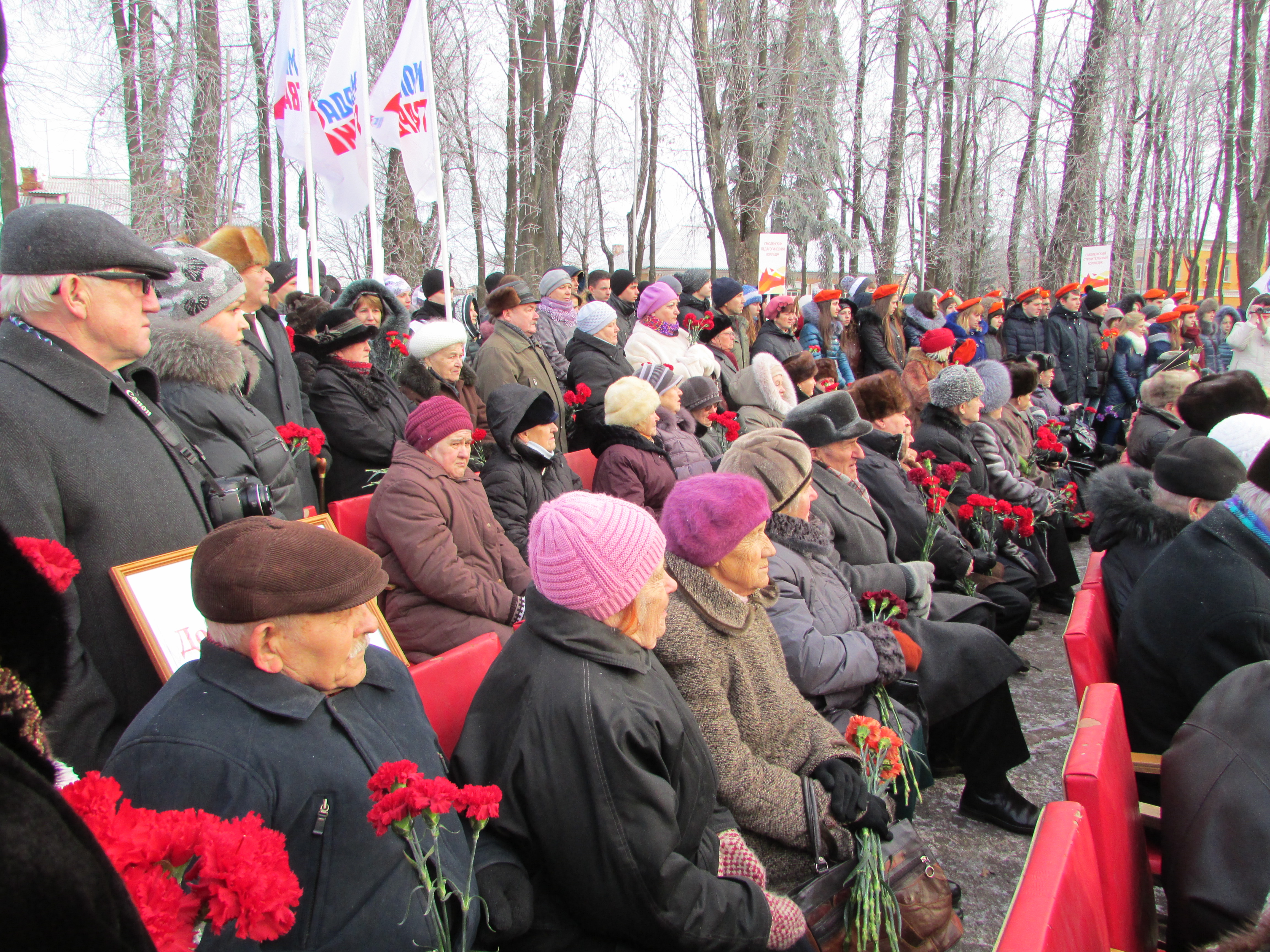 Взявший слово Губернатор Алексей Островский сказал: «Для нас, жителей Смоленщины, особо ценно решение Президента Российской Федерации, руководства страны, депутатов Государственной Думы о введении нового государственного праздника, праздника, посвященного неизвестным героям, благодаря которым мы сегодня имеем возможность жить, растить детей, радоваться их счастью, их успехам.