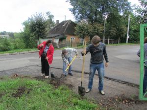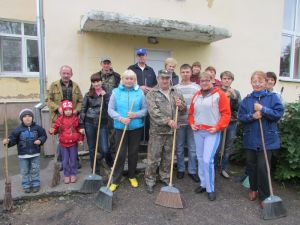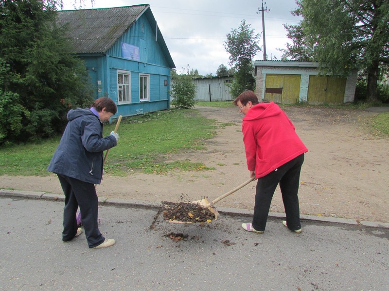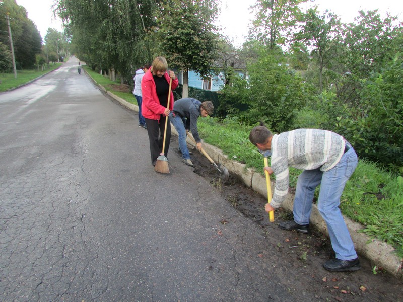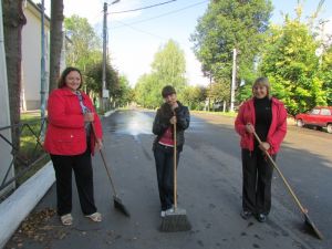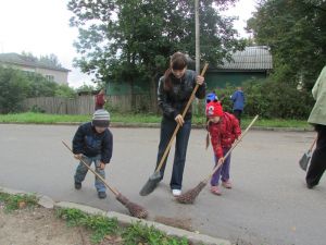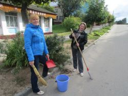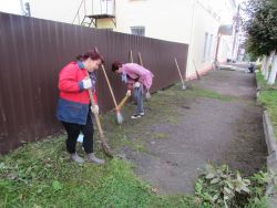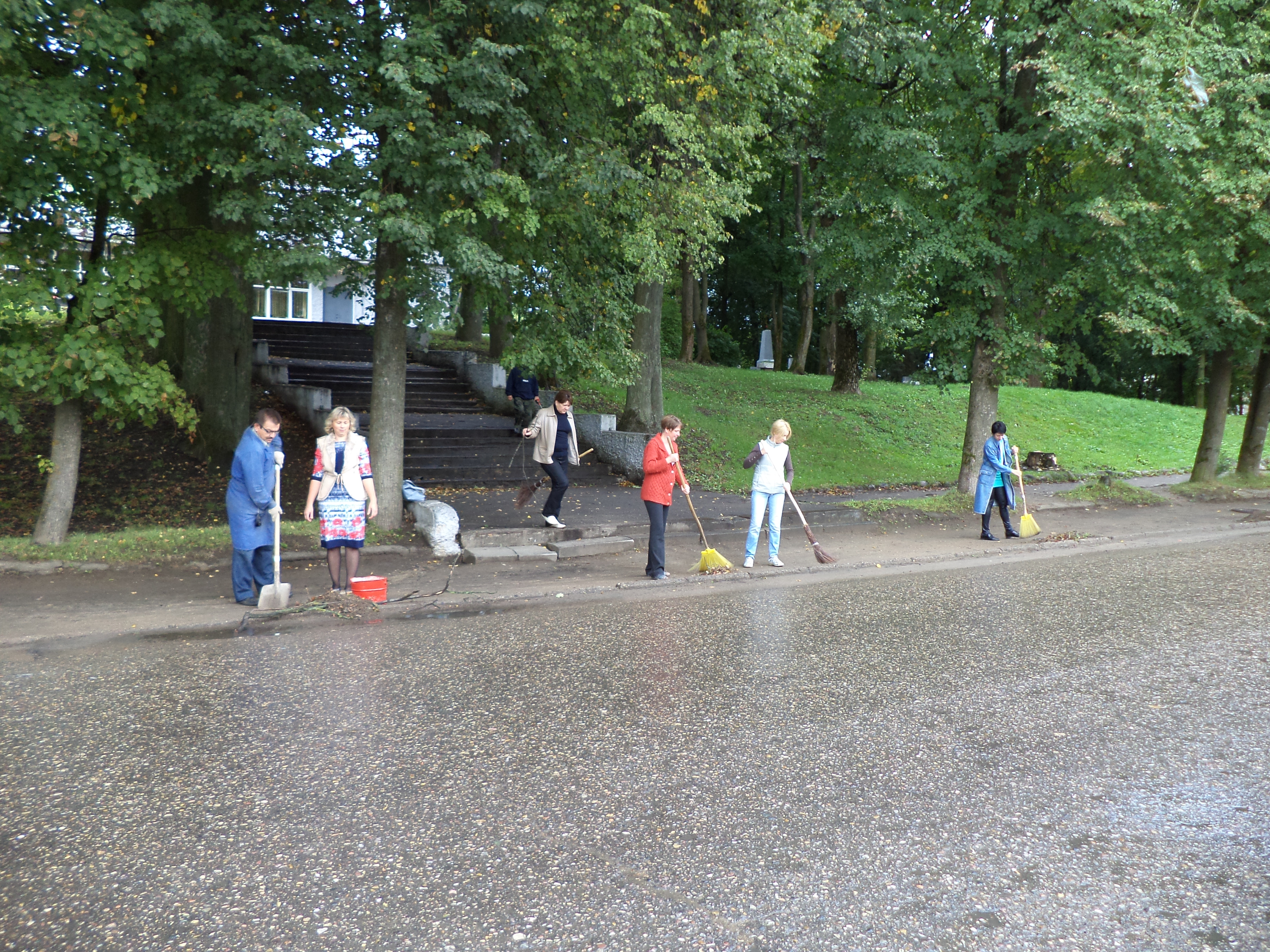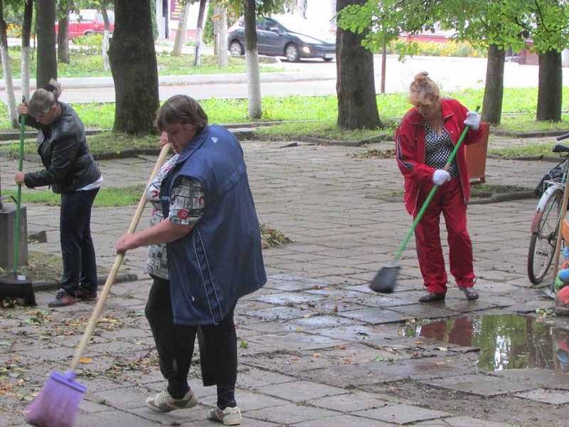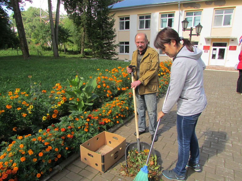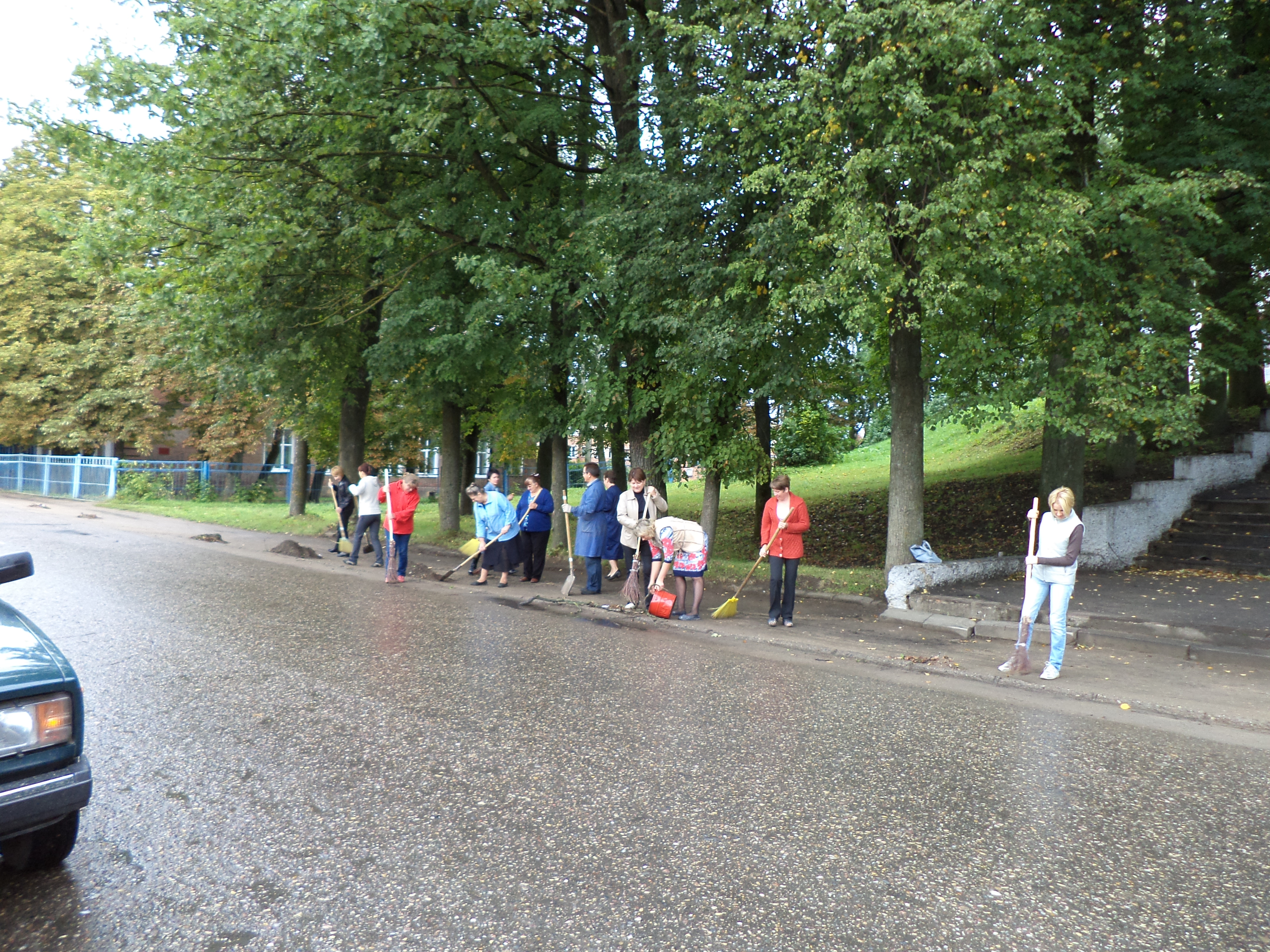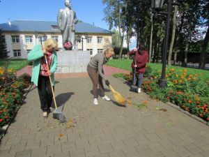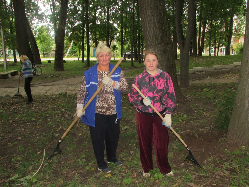 Большая группа работников администрации района работала в скверике возле детской площадки в центре районного города. Здесь была убрана опавшая листва, выметен мелкий мусор, собраны пивные банки и пластиковые бутылки, к сожалению, в изобилии оставляемые «гостями» детского городка.