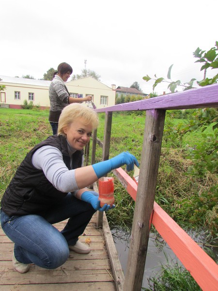 Возле городского родника вырубили разросшийся кустарник, выкрасили мостики через ручей.