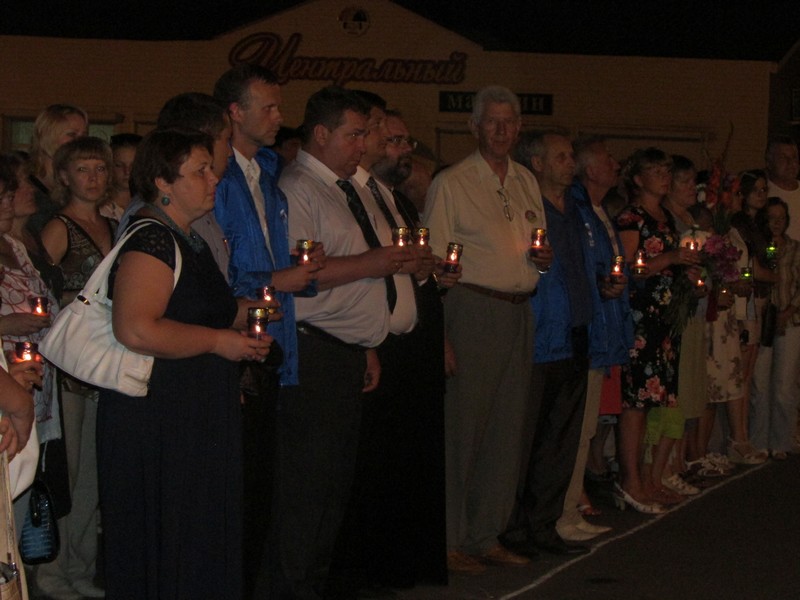 Там, как уже было сказано выше, состоялось открытие мемориальной плиты Герою Советскому Союзу Соловьёву В.И., после чего жители и гости города возложили цветы, поставили поминальные свечи и лампадки к братским могилам.