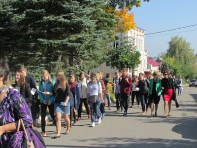 В духовщинском шествии приняли участие студенты Духовщинского аграрно-технического техникума и школьники старших классов. Прошествовав с плакатами и флажками по улице Советская, колонна направилась в кинотеатр «Заря».