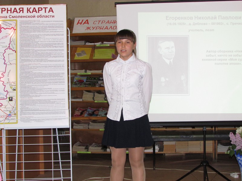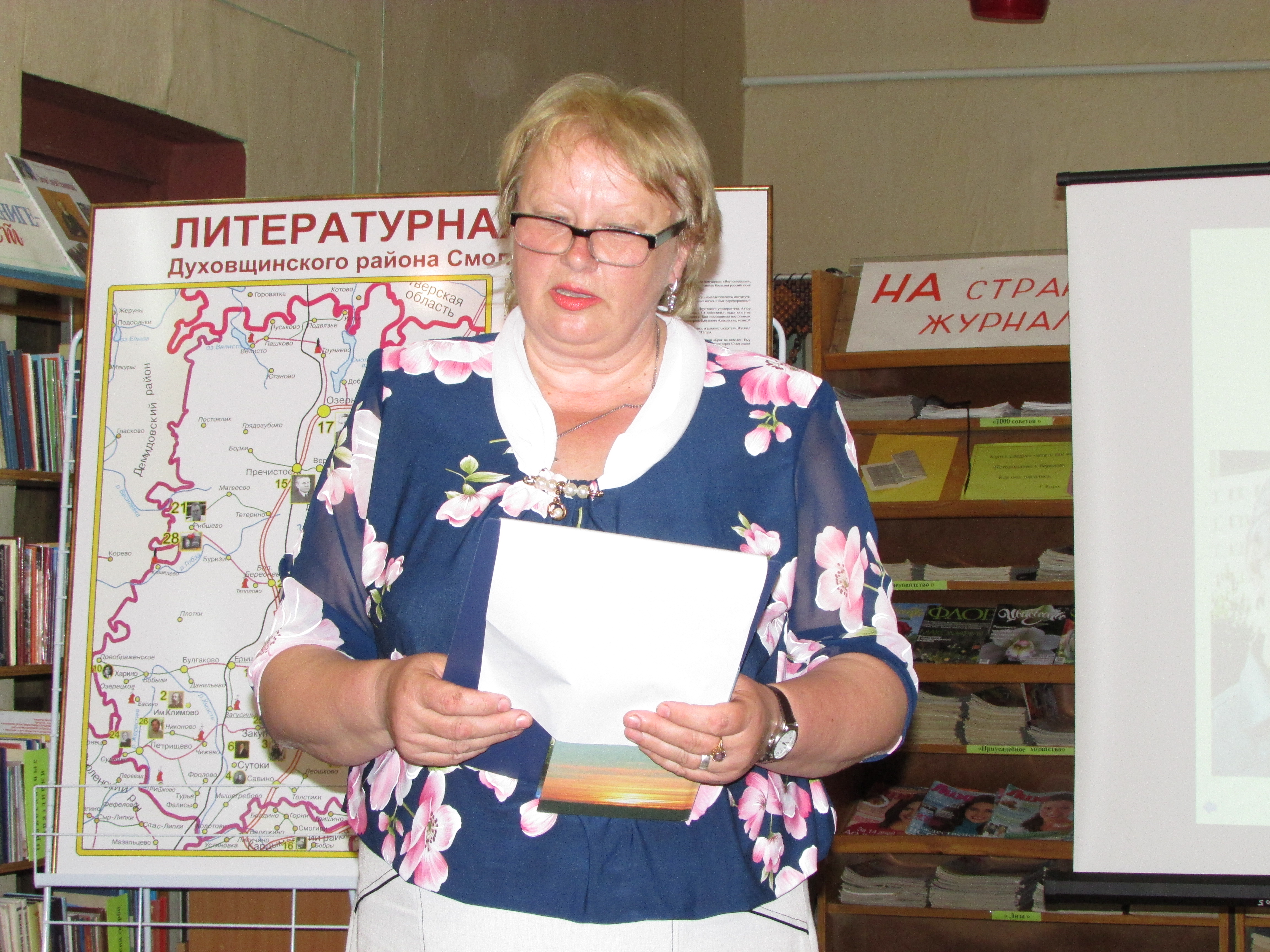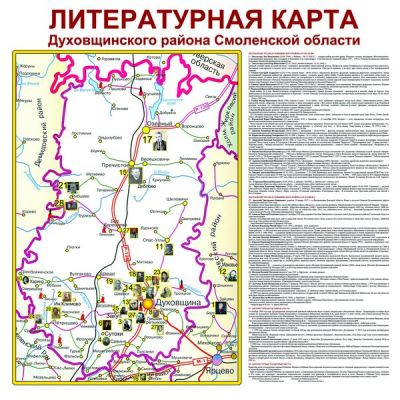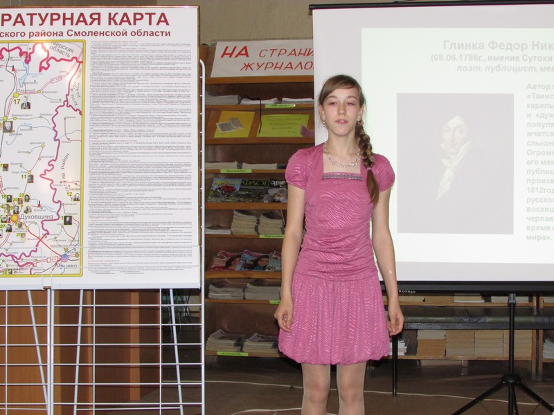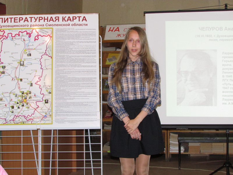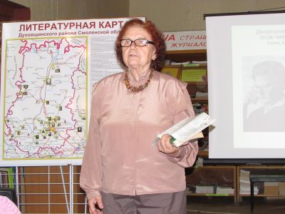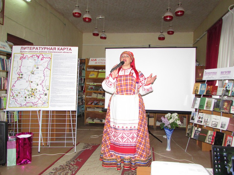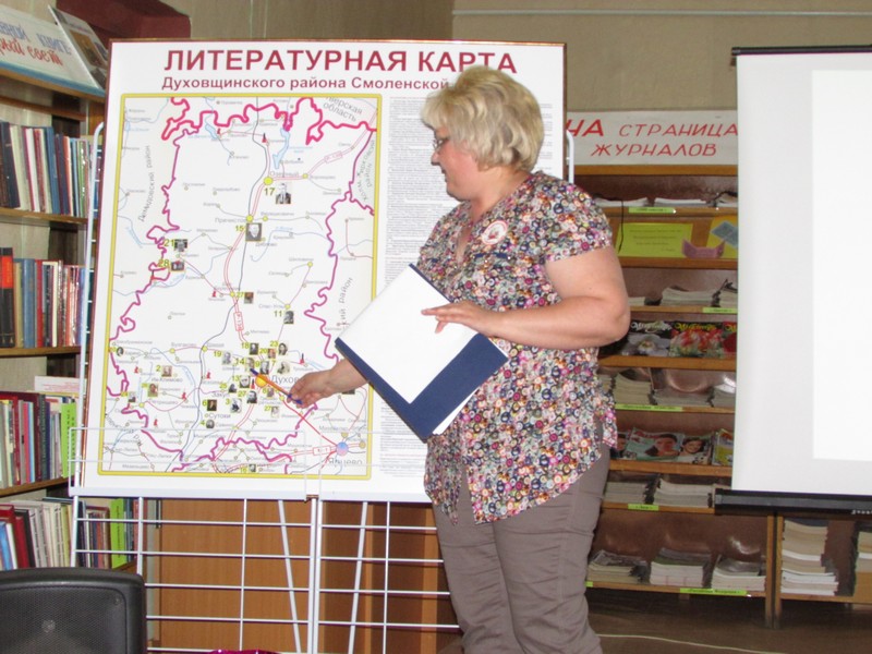 К юбилейной дате творческий коллектив библиотеки подготовил литературную карту Духовщинского района, где отмечены все поэты и писатели нашего края, дана краткая информация о каждом.