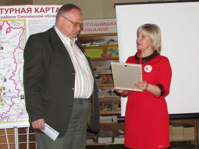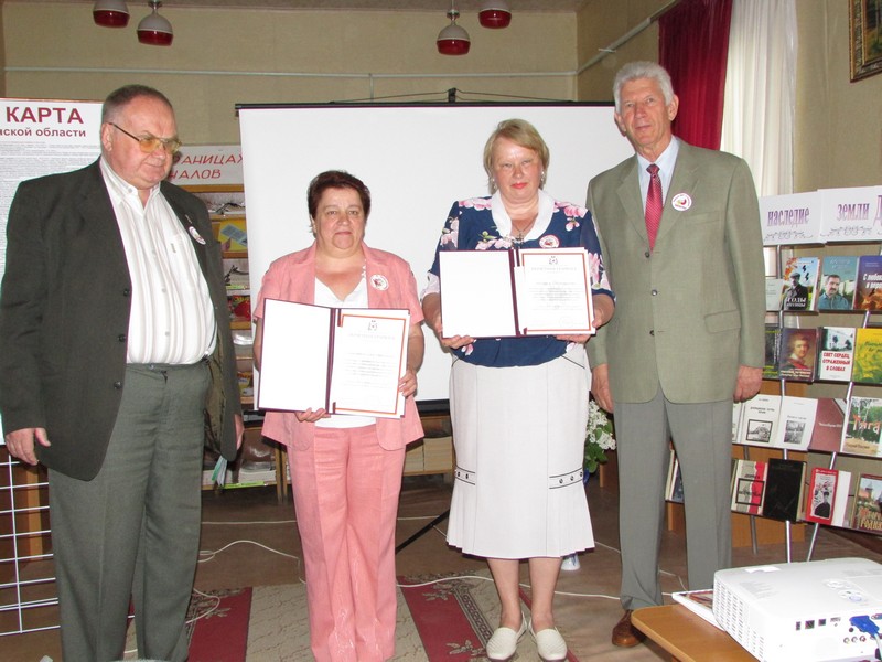 Две сотрудницы библиотеки, Московцева Т.П. и Пашкявичине Н.Н., в этот праздничный день за многолетний добросовестный труд и высокий профессионализм в исполнении служебных обязанностей были награждены Почётными грамотами Смоленской областной Думы.