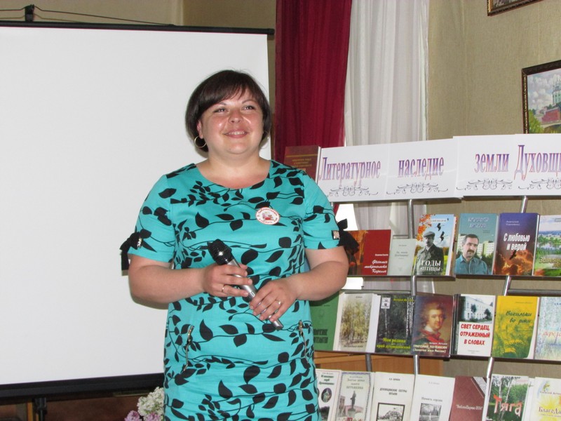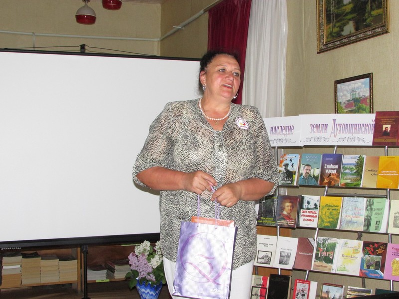 Появлению такой карты предшествовала огромная кропотливая работа, во время которой было открыто ни одно новое имя. О литературном прошлом и настоящем собравшимся эмоционально рассказала заведующая отделом обслуживания Духовщинской библиотеки С.В. Новикова.