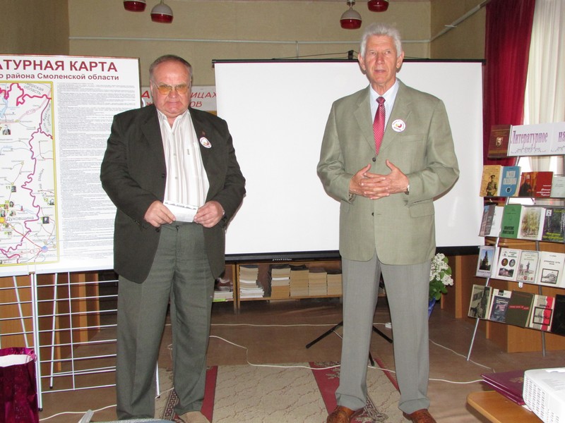 Гостем духовщинцев стал наш земляк, сейчас проживающий в г. Смоленске, В.В. Королёв. В.В. Королёв, автор стихов и прозы, член Союза писателей и Союза журналистов Российской Федерации, представил на суд земляков первую главу его ещё не вышедшей в свет книги «Ад и слава Соловьёвой переправы».