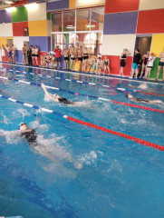 В программу в этом году впервые ввели плавание. И наша спортсменка Анастасия Овсяник в личном первенстве взяла 2 золота! Инна Овсяник - бронзу! А в комбинированной эстафете 4х50 метров вольным стилем наша команда в составе Анастасии и Ирины Овсяник, Виктора Цыбарова, и Максима Ильющенкова стала второй.