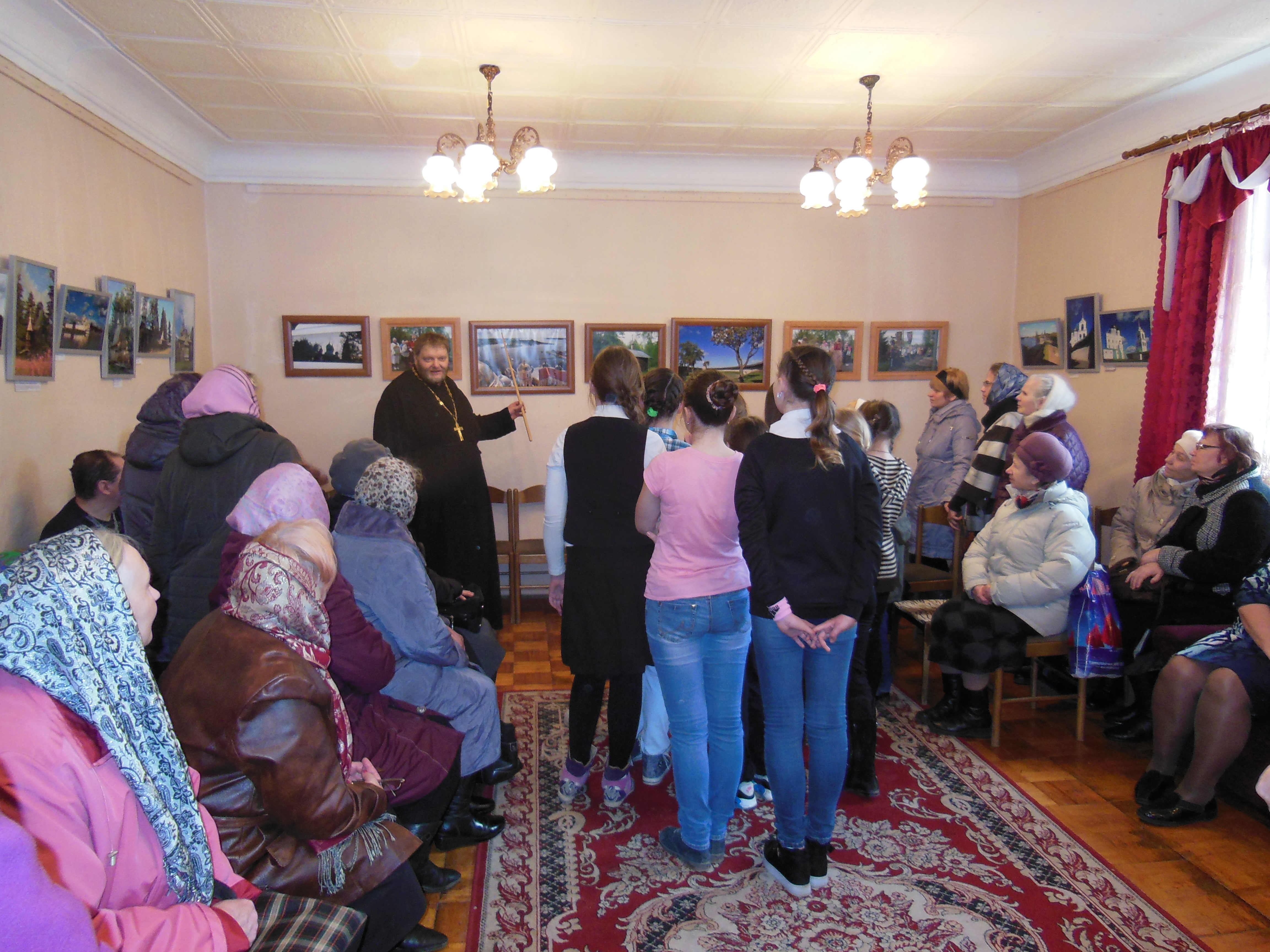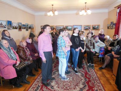 На лицах гостей мероприятия читался неподдельный интерес. Многие уже в процессе рассказа автора о своей фотовыставке загорелись желанием совершить поездки по святым местам России и увидеть их своими глазами. Со словами благодарности к автору обратились заместитель главы муниципального образования "Духовщинский район" Н.С. Образцова-Чепой и настоятель Свято-Духовского храма г. Духовщины отец Олег.