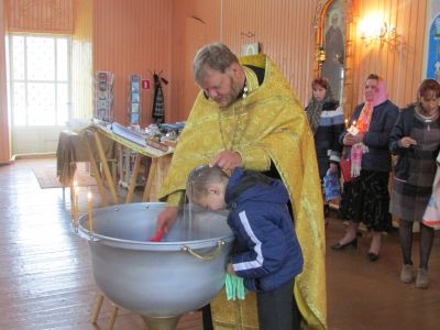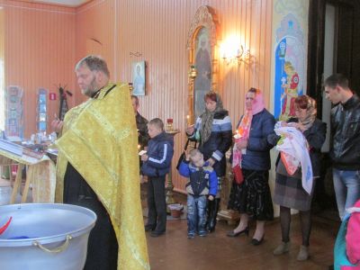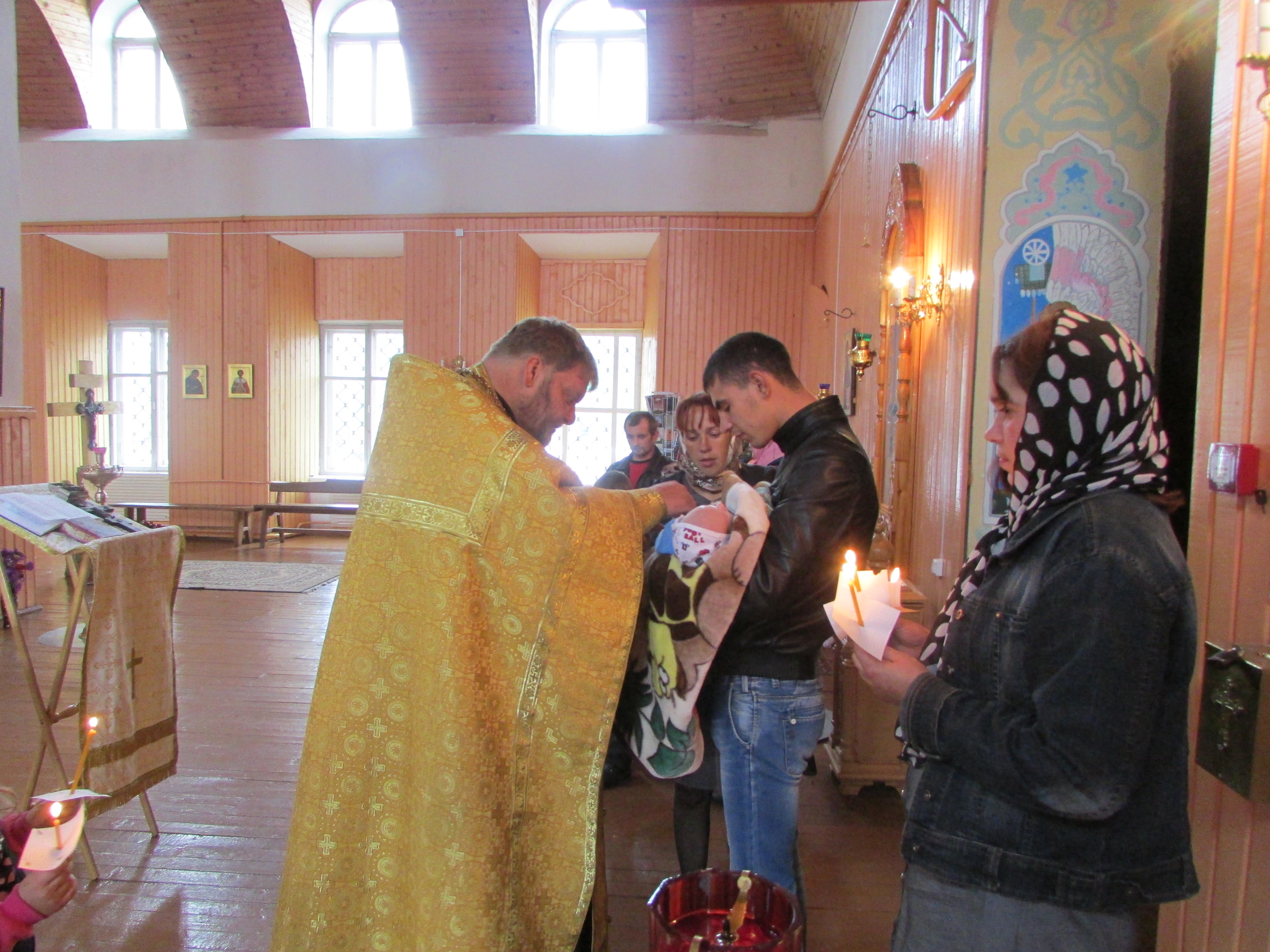 Обряд крещения детей провел настоятель храма Святого Духа протоиерей Олег Козловский в Храме Святого Духа г. Духовщина.