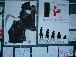 В фойе школы была организована выставка работ учащихся «В будущее без наркотиков».