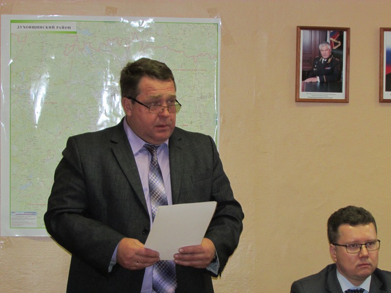 Торжественное заседание открыл начальник отделения полиции по Духовщинскому району МО МВД России «Ярцевский» А.М. Тарасов, тепло поздравивший коллег с праздником.