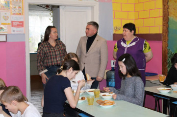Глава округа Виктор Молотков и Ио начальника отдела образования Наталья Ильина продолжают проводить незапланированные проверки школьного питания. Сегодня они побывали в Третьяковской основной школе.
