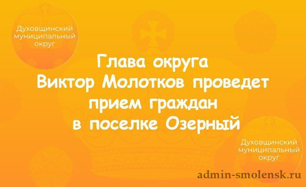 30 мая глава муниципального образования "Духовщинский муниципальный округ" Виктор Молотков проведет прием граждан в поселке Озерный.