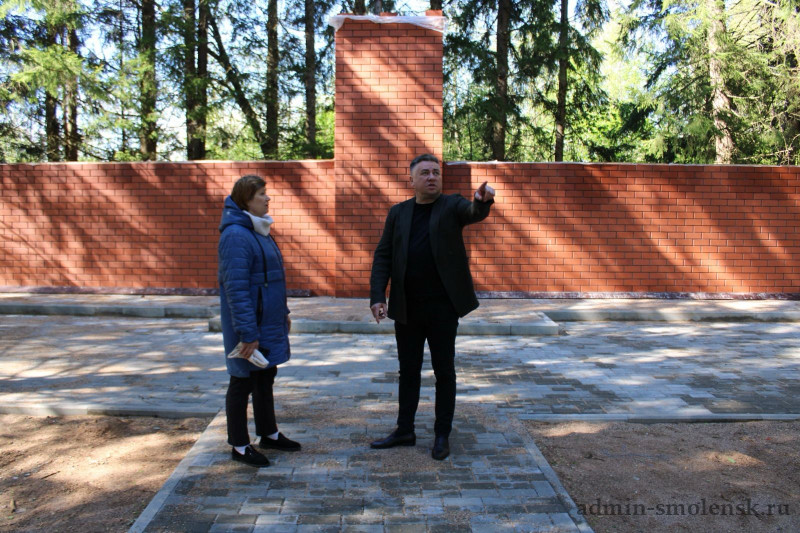 Глава Духовщинского округа Виктор Молотков вместе с заместителем Алексеем Федоровым и председателем Третьяковского территориального комитета Еленой Ивановой проверили ход ремонтных работ на памятнике Великой Отечественной войны в деревне Петрищево.