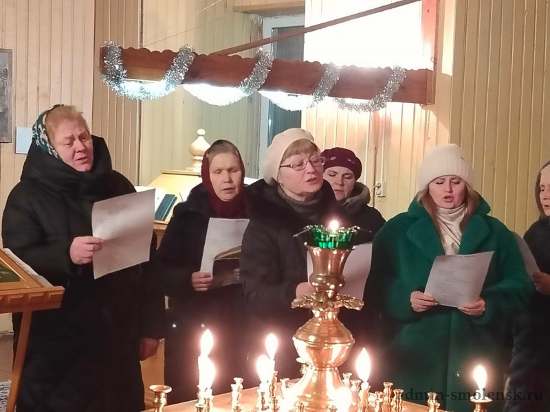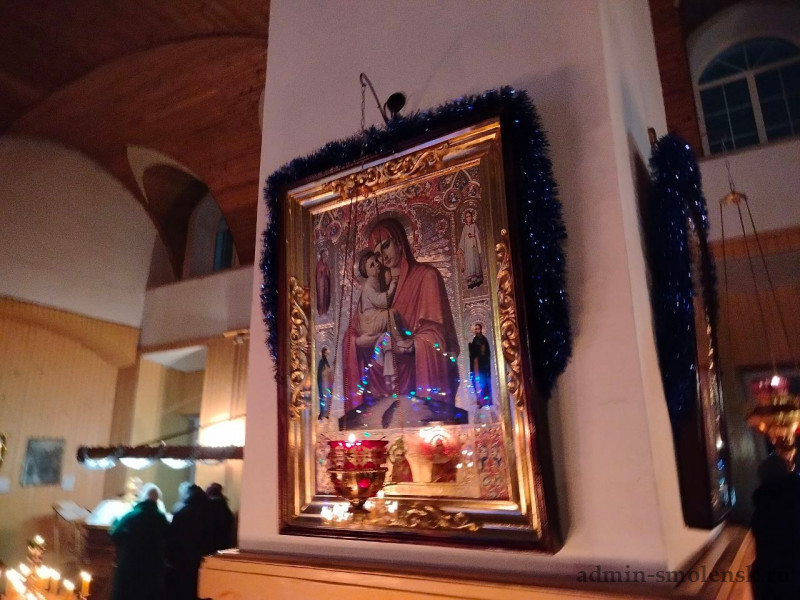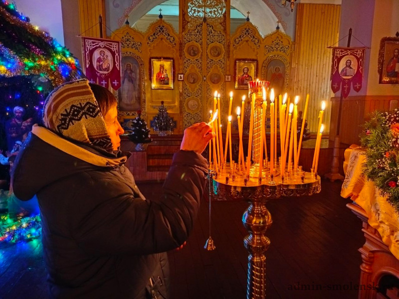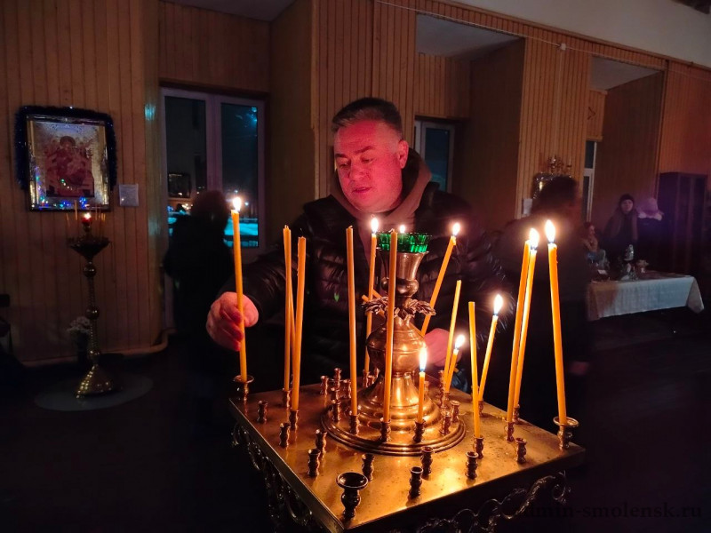 Глава округа Виктор Молотков вместе в жителями города Духовщины встретил Рождество Христово в храме Святого Духа