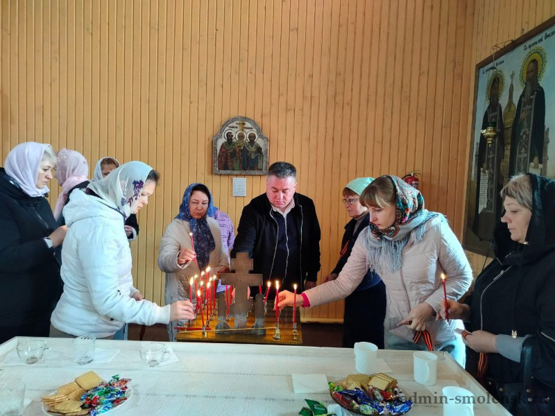 Глава Духовщинского округа Виктор Молотков вместе с родственниками участников специальной военной операции зажег свечу и помолился за наших защитников. Затем за чашкой чая они пообщались и обсудили насущные вопросы.