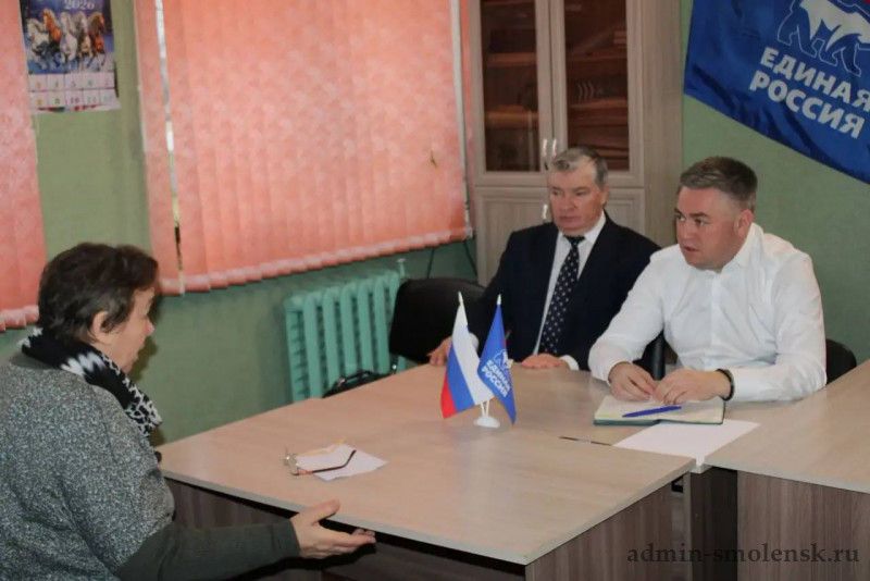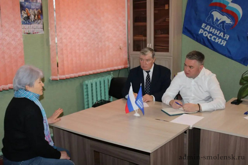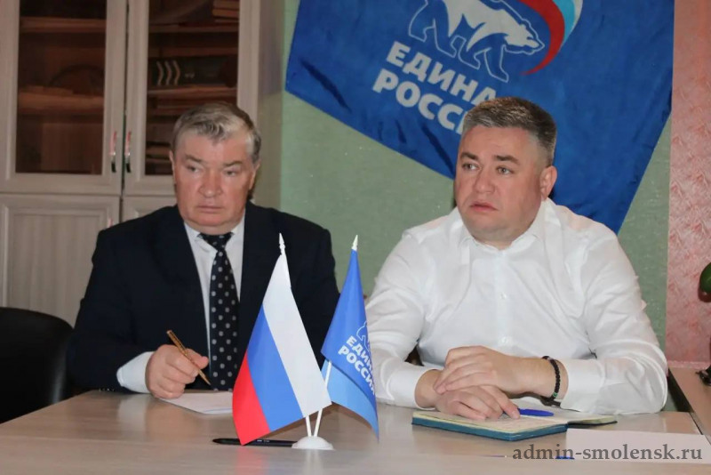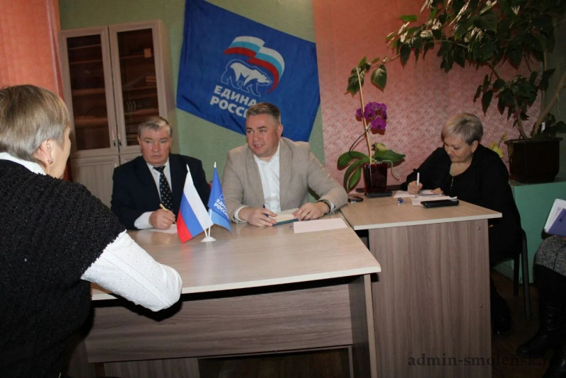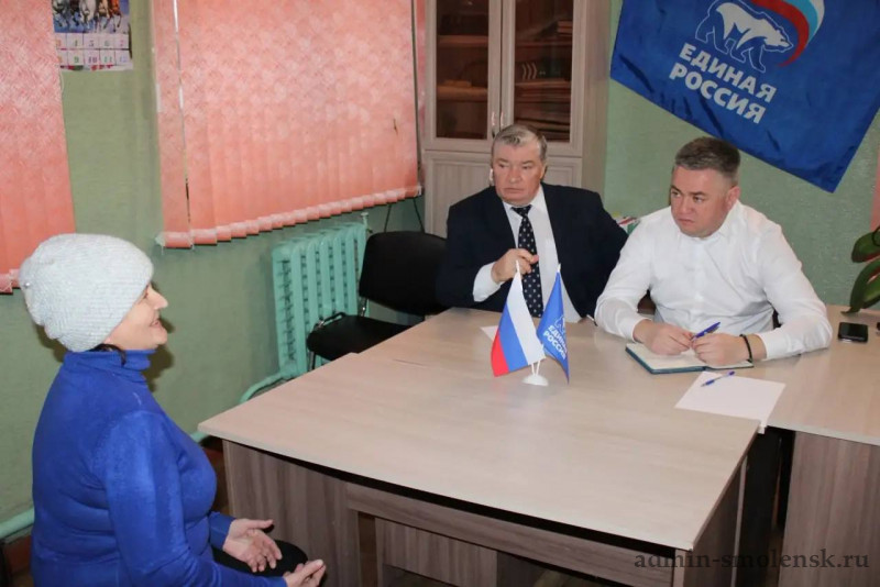 В рамках декады приемов ко Дню рождения Единой России глава округа Виктор Молотков вместе с депутатом Смоленской областной Думы Николаем Дементьевым провели прием граждан в селе Пречистое