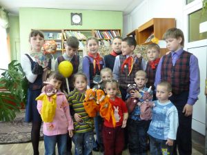 Затем в школьной библиотеке учениками 4 «А» класса был организован кукольный спектакль «Колобок». В их изложении это была не просто сказка, а целая история. Малыши смотрели, затаив дыхание, и дружно хлопали в конце представления.