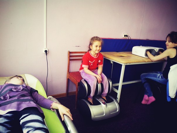 Также воспитанникам была предложена кровать-массажер Нуга Бест, сочетающая в себе методы точечного массажа позвоночника, массажер для ног, выполняющий воздушно-компрессионный и растирающий массаж для снятия усталости, и массажер для рук, осуществляющий точечный массаж кистей рук как тыльной части, так и ладоней.