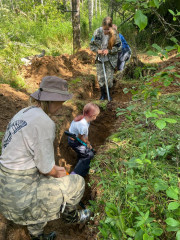 На данный момент подняли одного бойца. К сожалению, безымянного. Приняли решение вскрыть всю боевую траншею. Сил потратили очень много, но больше результатов не было. Сейчас исследуется фляжка бойца, на которой, возможно, есть надпись. Впереди еще много работы: шурфы, лопаты, щупы, и надежда на то, что ты поднимешь своего бойца, не вернувшегося с войны к своей семье, своим близким, а может быть, и узнаешь о его судьбе…"