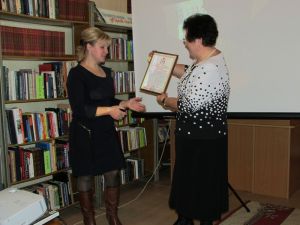 Н.Г. Прохорова вручила Председателю Духовщинского районного Совета женщин И.О. Каралёвой благодарственное письмо Смоленской областной общественной организации ветеранов труда, войны, Вооружённых Сил и правоохранительных органов за память о Паршенкове Павле Ивановиче.