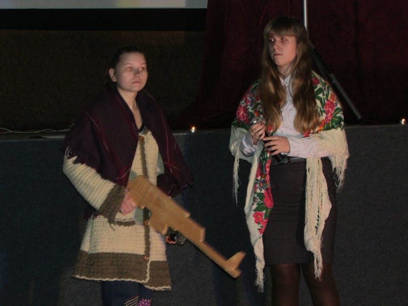 Театральными постановками, яркими танцевальными композициями и песнями школьники рассказали о судьбах духовщинских хатыней, мирных жителей, пострадавших во время оккупации 1941-1943 годов.