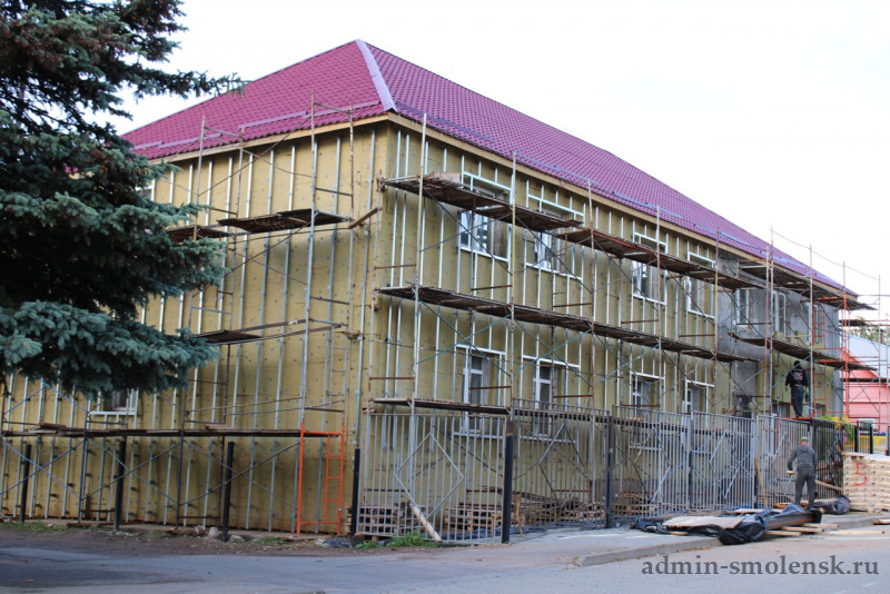 идет ремонт Духовщинской музыкальной школы и благоустройство территории памятника участникам партизанского движения.