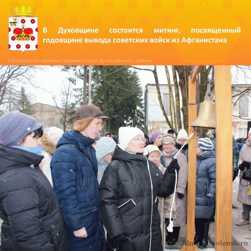 В городе Духовщине пройдет митинг он посвящен 37-ой годовщине вывода советских войск из Афганистана