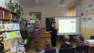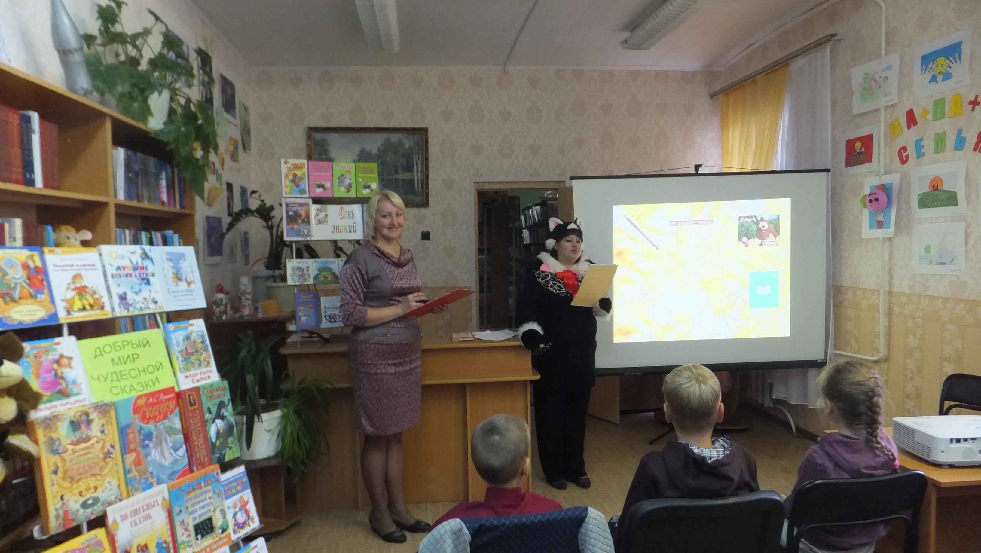 Ведущая рассказала ребятам о празднике и познакомила их с библиотекой, а кот ученый приготовил для ребят книжную выставку «Добрый мир чудесной сказки» и провел веселый урок, а также викторину по сказкам. В конце мероприятия все дети получили небольшие подарки.