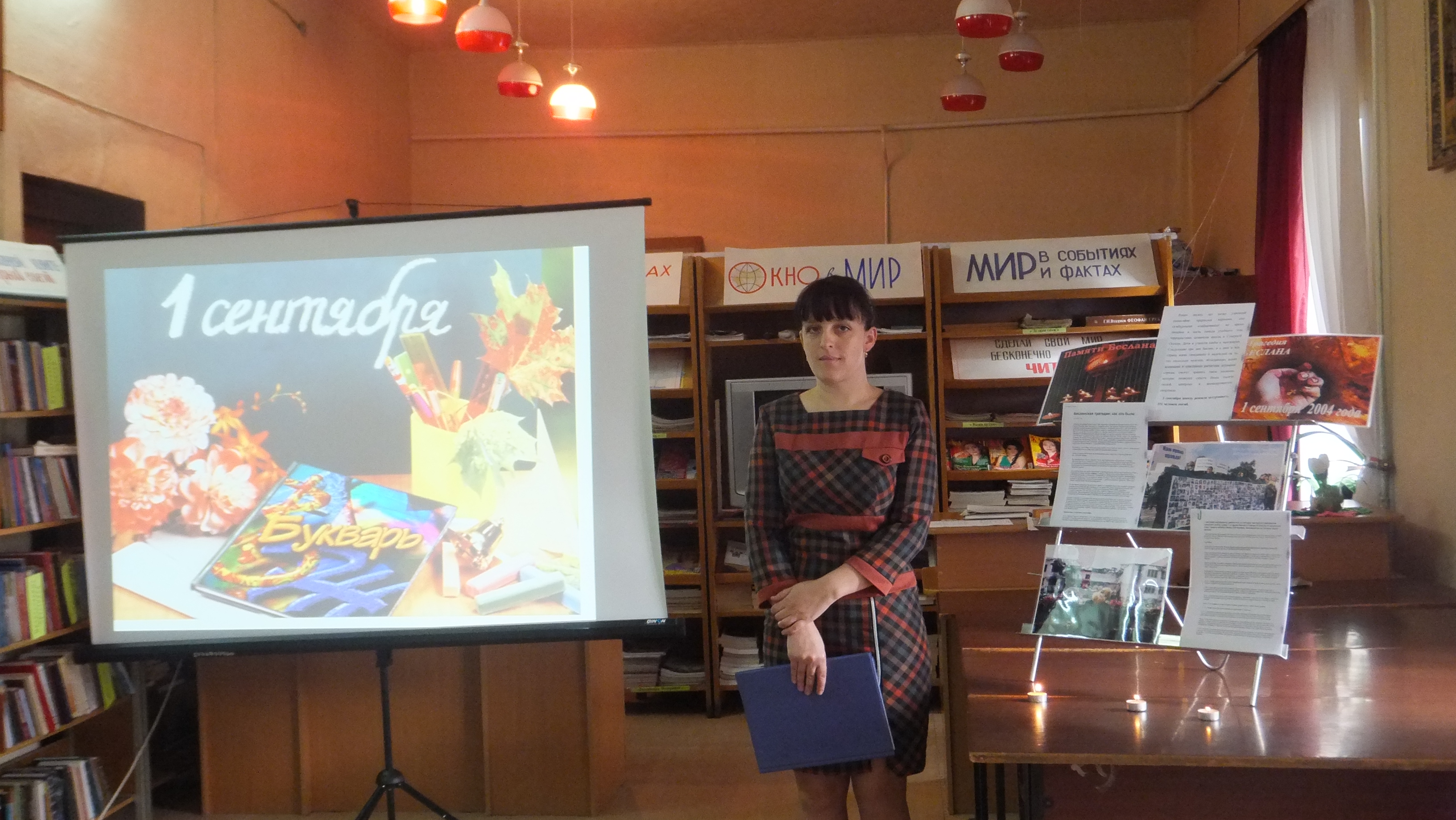 Для ребят была организована книжная выставка и подготовлена презентация «Памяти Беслана», посвященная десятилетию со дня страшного события, происшедшего в Северной Осетии 1 сентября 2004 г.