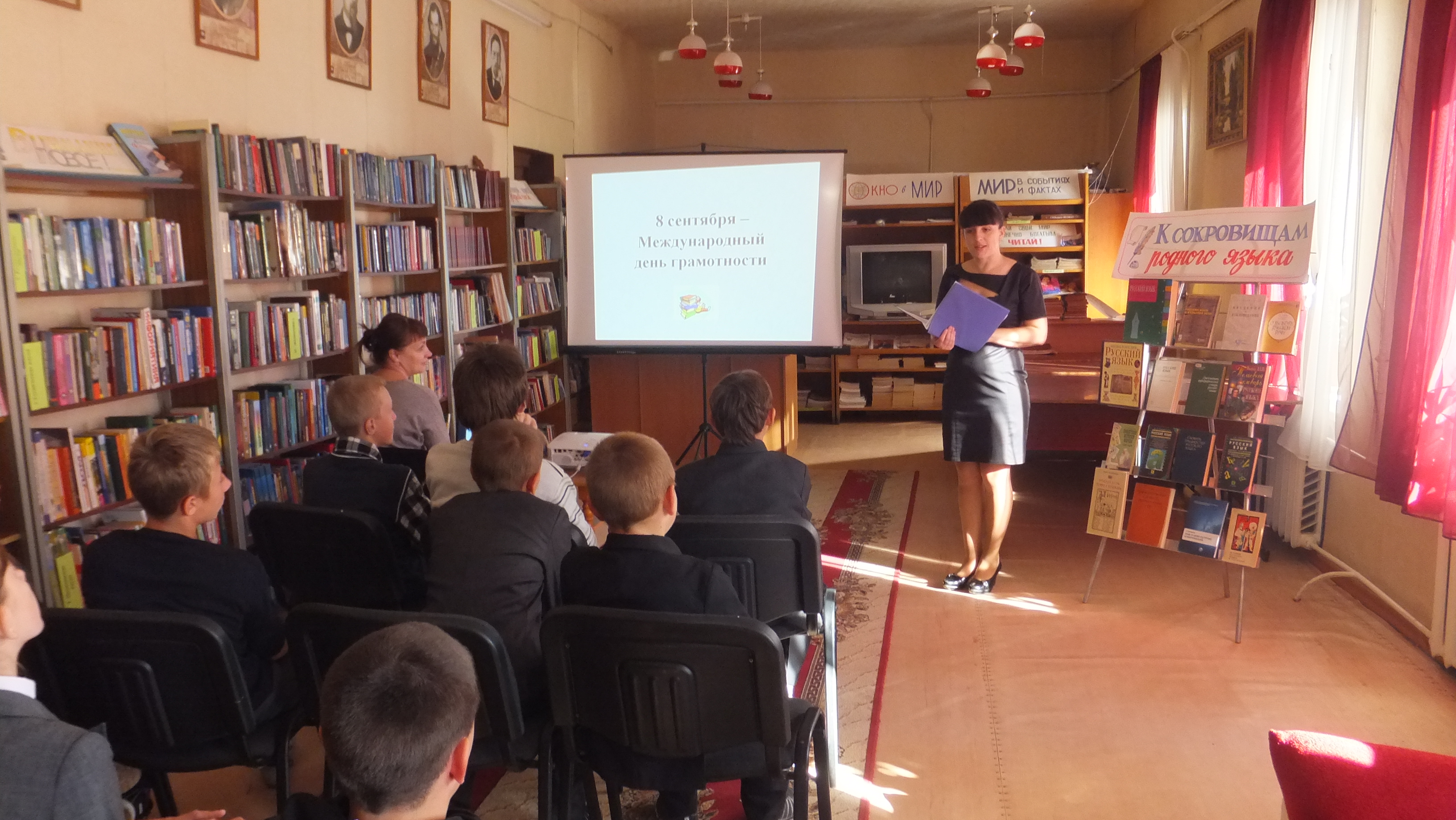 На мероприятии присутствовали учащиеся школы-интерната №2. Грамотность является одним из прав человека, средством расширения личных свобод и возможностей, а также инструментом развития индивидуального человеческого потенциала и общества в целом. Почему важно быть грамотным? Что такое грамота? Как стать грамотным? Получить ответы на эти вопросы - вот главная цель проводимого мероприятия. Библиотека – главный помощник в этом вопросе. Здесь есть вся литература. Приходи! Читай! Повышай свою грамотность!