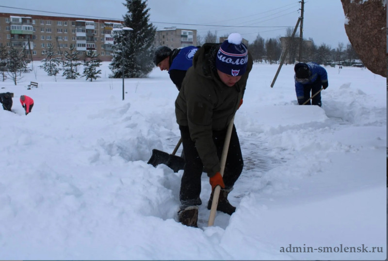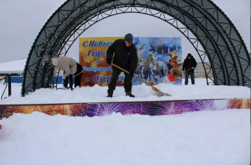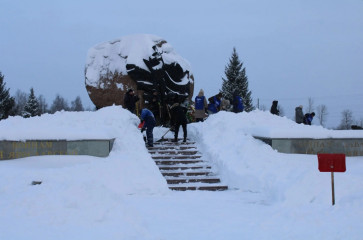 Расчистили от снега каток, часть парковой зоны и территорию памятника на Поле Памяти.