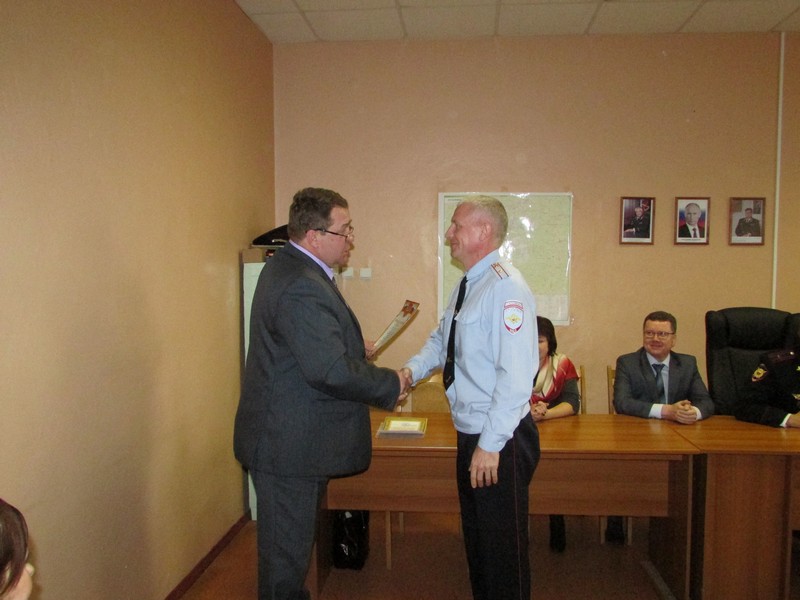 10 ноября в здании отделения полиции по Духовщинскому району состоялось чествование полицейских, в котором приняли участие глава муниципального образования «Духовщинский район» Б.В. Петифоров, начальник отделения полиции по Духовщинскому району межмуниципального отдела МВД России «Ярцевский» А.М. Тарасов, а также глава муниципального образования Озёрненского городского поселения О.В. Тихонова и заместитель прокурора Духовщинского района В.Е. Дедков.