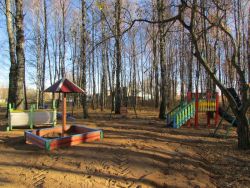 Площадка расположена в роще вблизи Духовщинского хлебокомбината, все её элементы сделаны согласно требованиям безопасности и окрашены в яркие цвета.