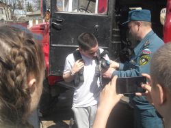 На территории пожарной части города Духовщины такие встречи проводятся регулярно и включают в себя обширную программу. В этот раз в целях соблюдения традиций, ранее заложенных сотрудниками пожарной охраны, а также воспитания молодого поколения в духе патриотизма и уважения к профессии пожарного, встреча была тематической, она была приурочена к 366 годовщине образования Пожарной охраны России, 70-летию Великой Победы и 25-летию со дня образования МЧС России. В гости к пожарным пришли учащиеся 7 класса МБОУ Духовщинская средняя общеобразовательная школа им. П.К. Козлова.