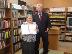 Вручение грамоты состоялось 10 декабря в центральной районной библиотеке депутатом Смоленской областной Думы П.М. Берксом.