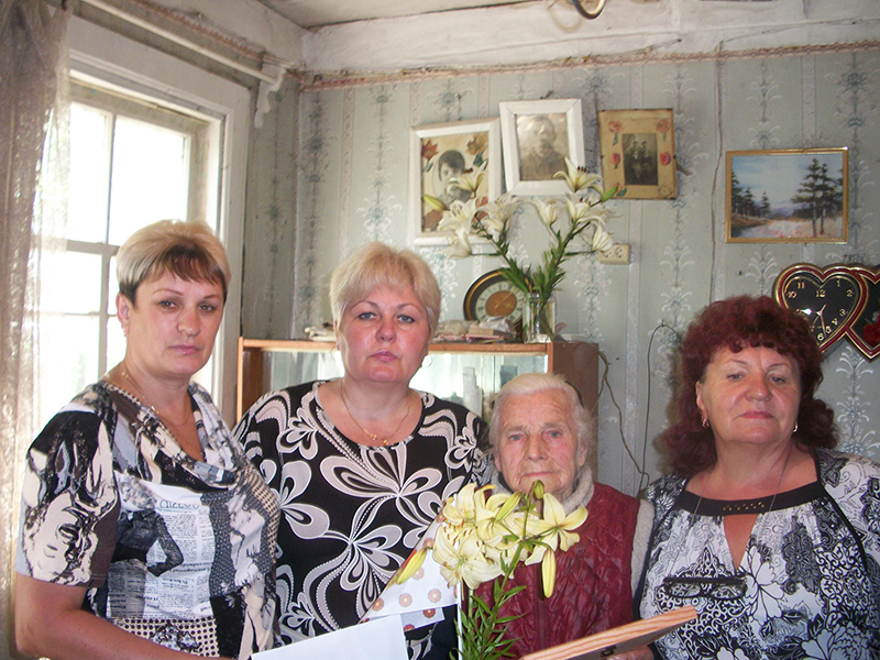 Поздравить юбиляра, высказать слова благодарности за нелёгкий труд в годы Великой Отечественной войны, в послевоенное время, вручить памятные подарки приехали заместитель Главы Администрации муниципального образования «Духовщинский район» И.Г. Мисуркина, руководитель сектора социальной защиты населения в Духовщинском районе Е.П. Касьянова.