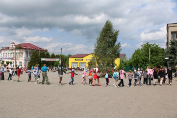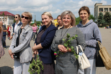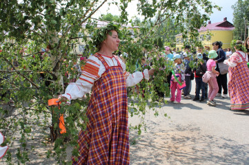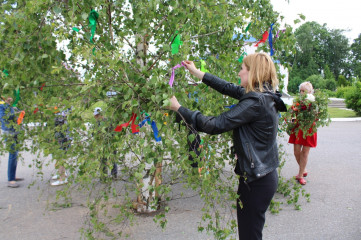 По старинному обычаю жители и гости города украсили березу яркими лентами, а потом вокруг неё водили хороводы и пели обрядовые песни.