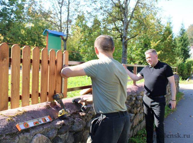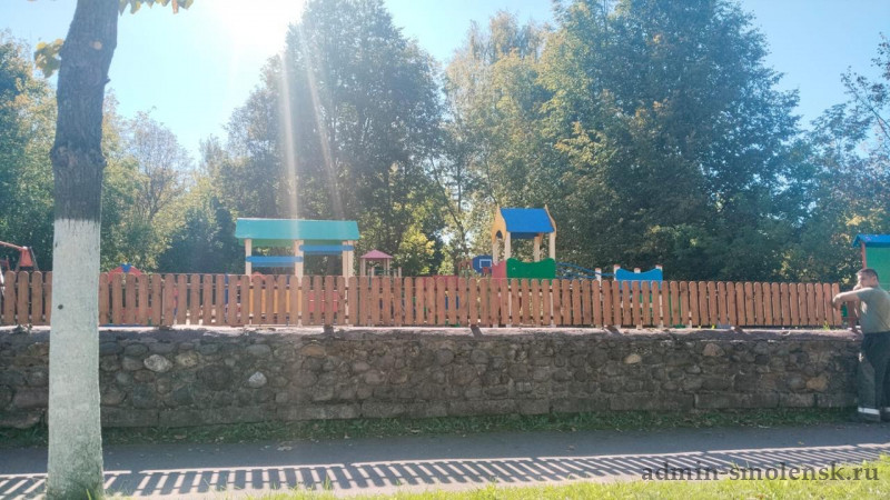 Продолжаем работы по благоустройству детской площадки на улице Советской в городе Духовщине