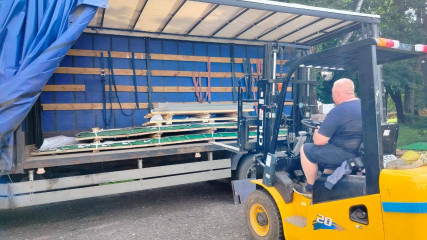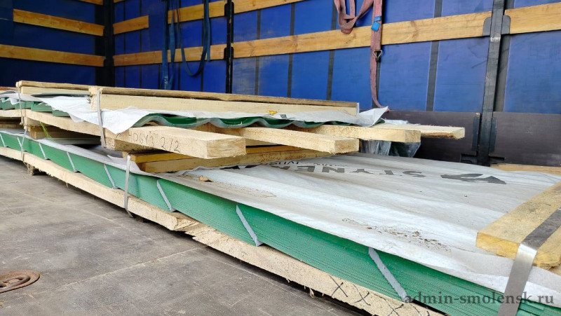 Сегодня материал - металлочерепицу светло-зеленого цвета - доставили в Духовщину. И как объяснил диакон Сергей Матин, это духовской цвет. Храм, освященный в честь Святого Духа, должен иметь именно такие оттенки.