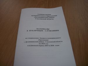 16 декабря 2013 г. в районной администрации под председательством Главы Администрации муниципального образования «Духовщинский район» Б.В. Петифорова состоялись публичные слушания по утверждению бюджета муниципального образования «Духовщинский район» Смоленской области на 2014 год и плановый период 2015 и 2016 гг.