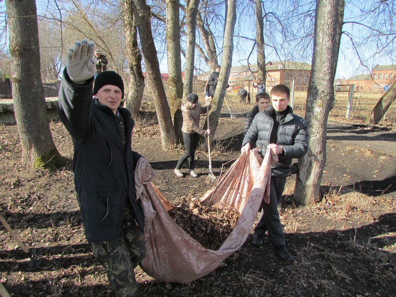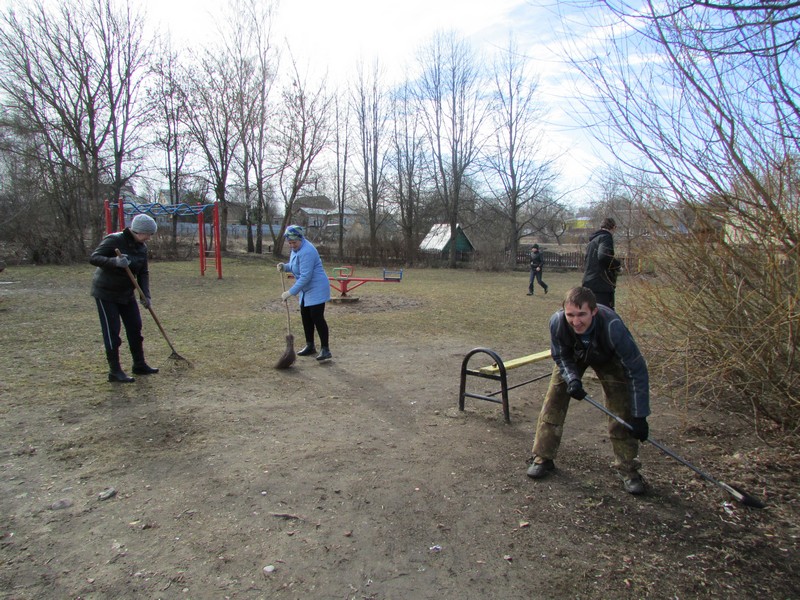 Во время субботника была убрана в парке прошлогодняя листва, выметен мелкий мусор, собраны пивные банки и пластиковые бутылки, убраны территории возле учреждений и организаций, приведена в порядок детская площадка.