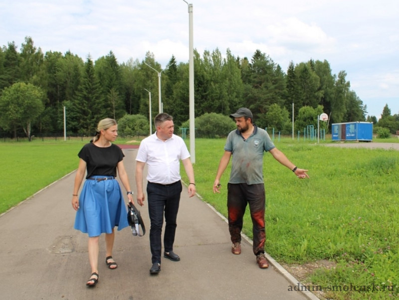 Глава округа Виктор Молотков вместе с исполняющей обязанности председателя Озерненского территориального комитета Светланой Панасенковой побывали на стадионе в Озерном.