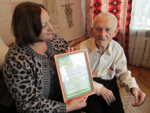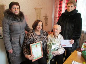 20 января заместитель Главы муниципального образования «Духовщинский район» Н.С. Образцова-Чепой, руководитель отдела социальной защиты населения в Духовщинском районе в Ярцевском районе Е.П. Касьянова и специалист Администрации Озёрненского городского поселения Л.Н. Коваленкова от имени всех духовщинцев поздравили с 90-летием жителя нашего района Клементьева Петра Степановича, проживающего в п. Озёрный.