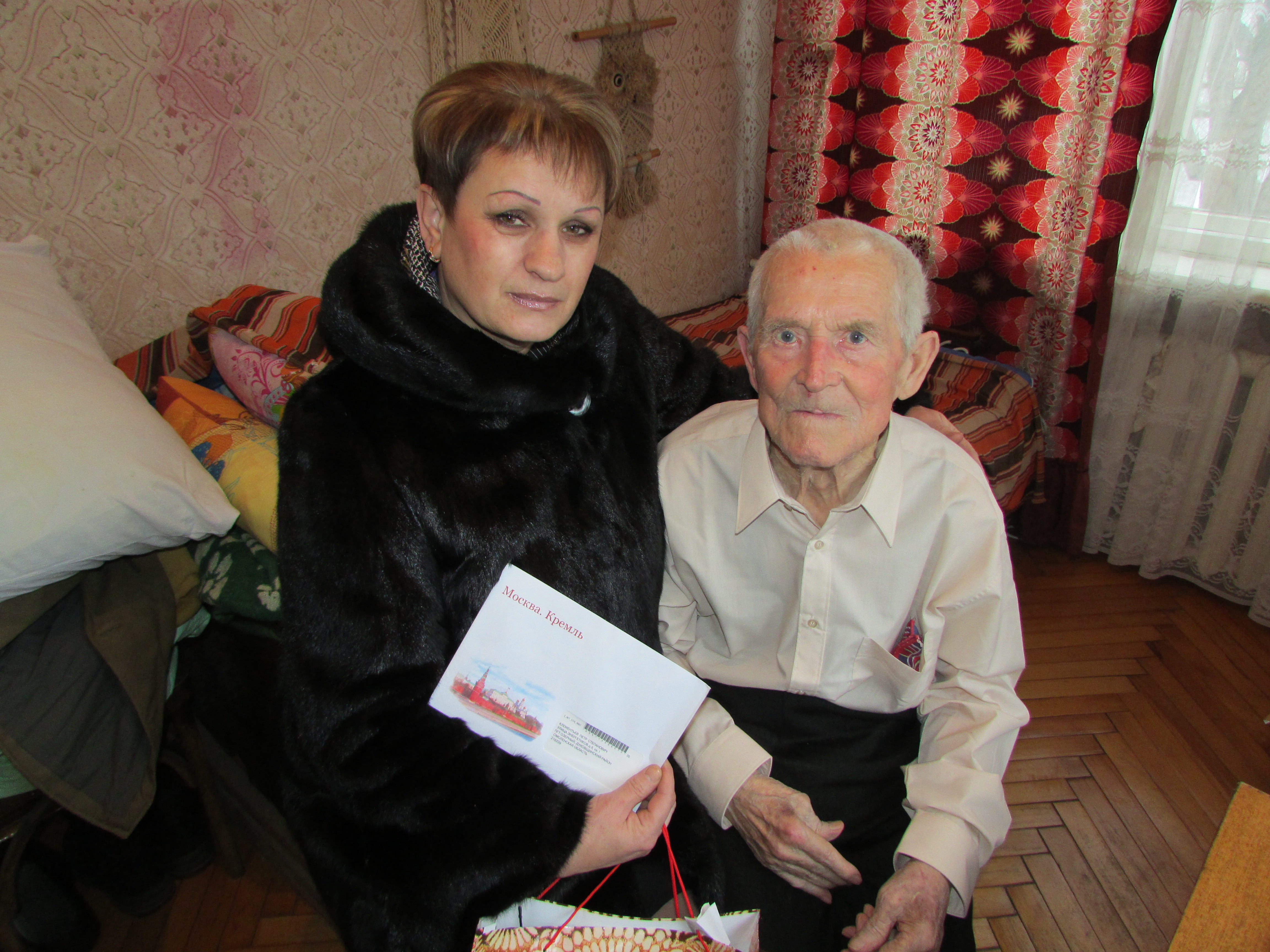 В тёплой дружественной обстановке ветерану вручили поздравления от Президента Российской Федерации В.В. Путина.